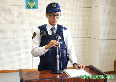 田村警察署の方から、児童と先生方にそれぞれ適切な指導・助言をいただきました。