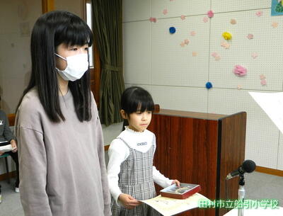 同「書きぞめ奨励賞」1年生1名・6年生1名」