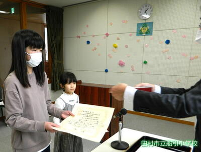 算数コンテスト「満点賞」1年生1名・2年生1名・3年生6名・5年生2名。この他惜しくも満点には届かなかったけれども、高得点の児童に「優秀賞」が贈られました。また、併せて満点賞・優秀賞の児童に「エクセレント鉛筆」が贈られました。