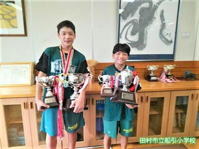 8月21日(月)にふねひきミニバスケットクラブスポーツ少年団男子チーム(代表2名)が県大会優勝報告に来ました。