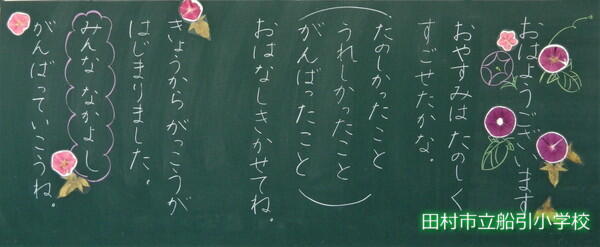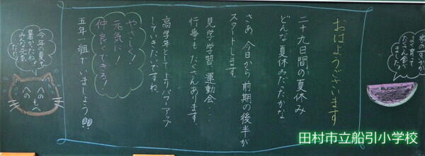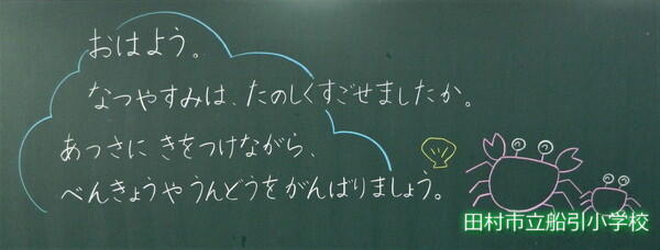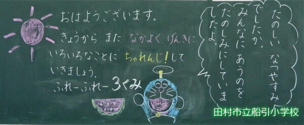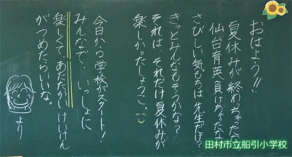 今日で夏休みが終わり、明日から学校の授業が再開します。先生方は子ども達の元気な笑顔が見られるのを楽しみにしています。