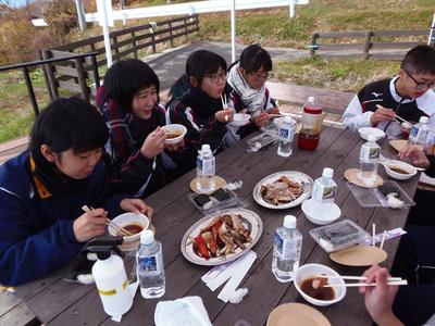 風が強く、若干寒い中ではありましたが、豪華な食事にみんな大満足でした。