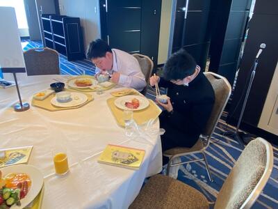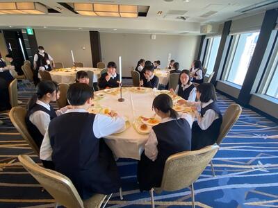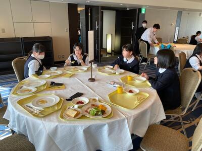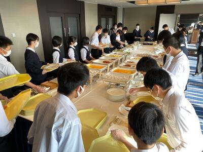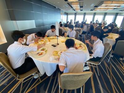 生徒たちは昨日たくさん歩きましたが、まだ元気です。寝坊することなく朝食会場に集まりました。