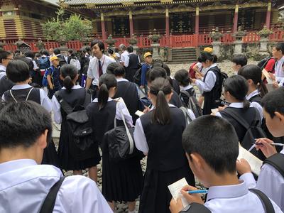 東照宮ではクラスごとに分かれ、ガイドさんの案内の境内を回ります。