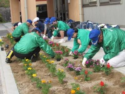 6月20日(木)本校のインターアクトクラブ(生徒会執行部・JRC委員会)と田村市ロータリークラブの皆さんで、学校敷地内の花壇の花植えを行いました。