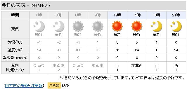 朝の光がさしこんだ瞬間に一気に冷える、放射冷却現象がみられました。