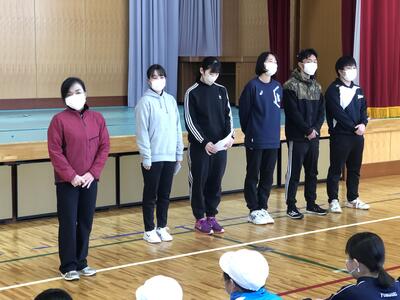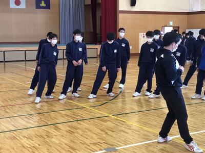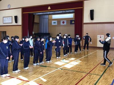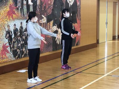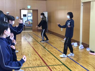 2月20日(月)の第1回目の授業は、福島大学人間発達文化学類特任教授 菅家礼子先生と学生5名を講師としてお招きして実施しました。菅家先生からダンスの基本的な構成やリズム等について、学生のみなさんから細かい振り付けについてご指導いただきました。多くの生徒のみなさんが、全身でリズムに乗って、笑顔を絶やさず楽しく学習することができていました。
