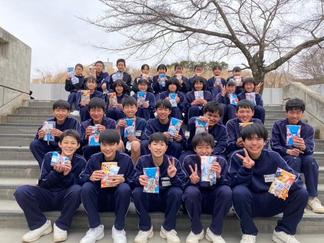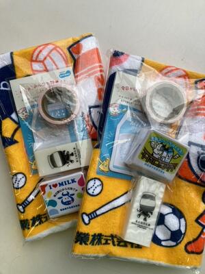 酪王協同乳業様から、なわとびコンテスト第1位の副賞が届きました。本日、校長先生から表彰伝達の際に代表生徒E.HさんとK.Hさんに贈呈されました。その後、特設陸上部・駅伝部の皆さんにも配布されました。タオルをはじめ素敵なプレゼントをいただき、特設陸上部・駅伝部の皆さんは大喜びでした。