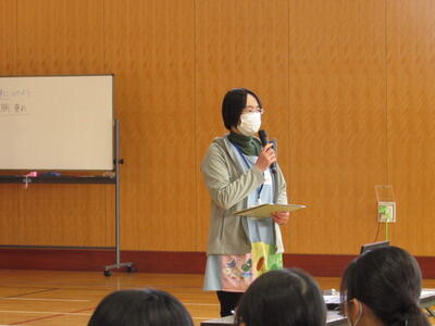 田村市学校給食センター副主任栄養技師の鈴木祐貴子様を講師にお招きし、「毎日食べている『食事』『食べ物』に関する講演を聞き、バランスのよい食事の取り方について正しい知識を深める。これからの生活で適切に食べることができる基礎・基本を身に付け、実践しようとする態度を育てる。」を目的に開催しました。