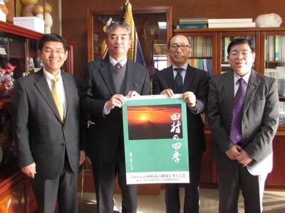 12月20日(火)、「これからの田村市の観光を考える会」の皆様が来校し、2023「田村の四季」カレンダーを寄贈してくださいました。