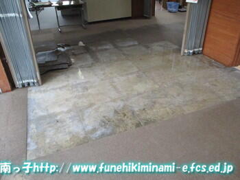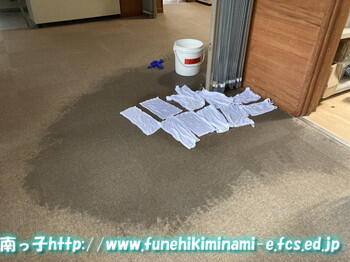 工務店様と一緒に、カーペットを剥がし、水を取りました。