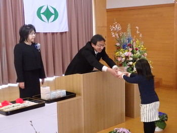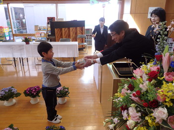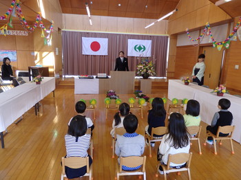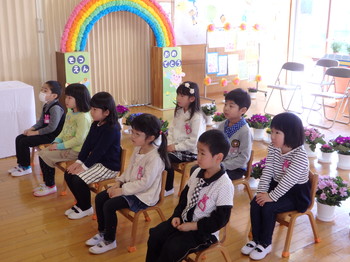 幼稚園修了式 2016年3月18日 13時19分 卒園式の前に、うさぎ組さんたちの修了式を行いました。4月に入園して1年、うさぎ組の園児たちは、とても成長しました。それが、式に参加する態度にも表れていました。立派な態度でした。