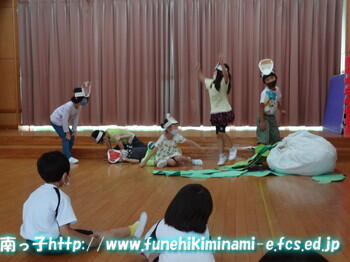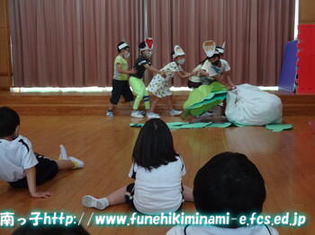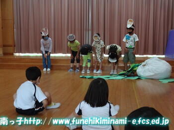 幼稚園生の前で、1年生が「大きなかぶ」の発表をしましたよ!