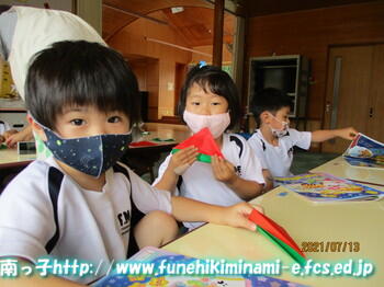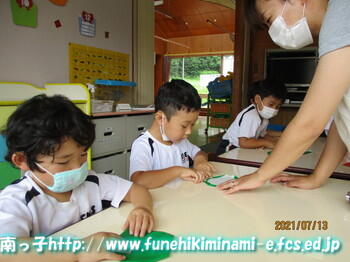 折り紙で夏の風物詩!スイカを作っていましたよ!