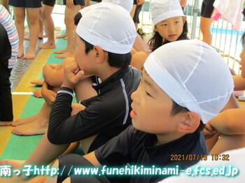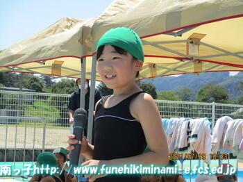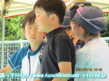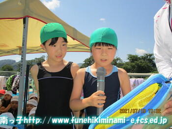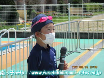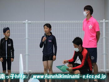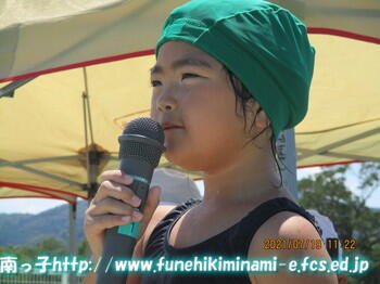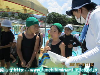 感想発表 2年生「いつもより泳げてよかったです!」 1年生「2年生みたいに来年、がんばりたいです!」