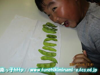 ぼくも!枝豆と一緒にハイポーズ! おかわりする人!!はーい!!