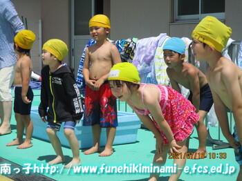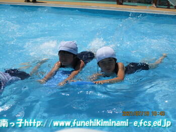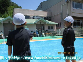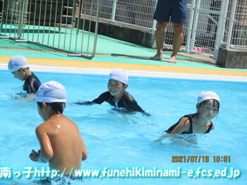 3年生・4年生のお兄さんやお姉さんが、「水泳記録会」をやっている隣のミニプールで