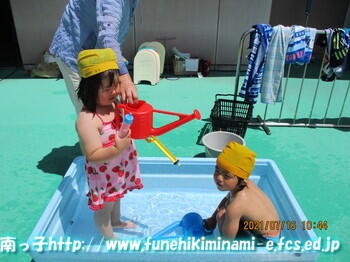 幼稚園生たちは、水とおともだちになるお勉強をしていましたよ!