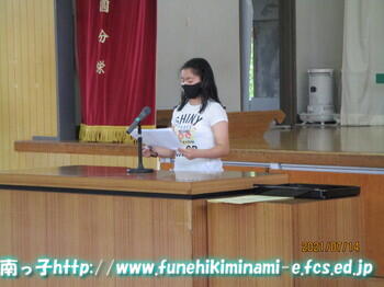 少年の主張で表彰を受けた6年生が、水曜日の全校集会で主張作文を発表しました!