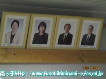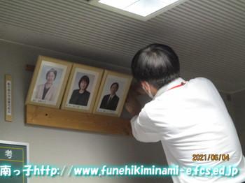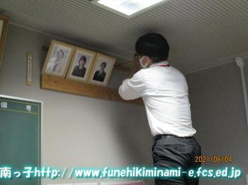 統合後の第4代校長先生の写真が仕上がり、「船引南小学校歴代校長」の場所に丁寧に掲げる教頭先生です。