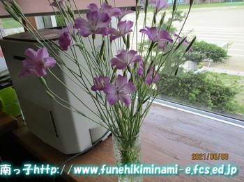 「今朝、家の庭にきれいに咲いていたので、学校の花瓶に挿してみました。」と用務員さんのお言葉。