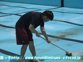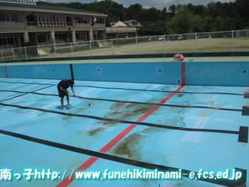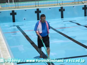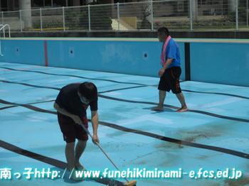 過日、運動会で活用したブルーシートを洗いましたので、少しだけ土が残っていたのを見つけた教頭先生と教務主任の先生が、最終プール磨きを行いました!