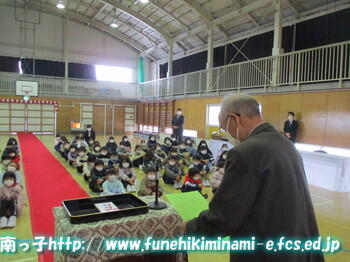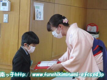 代表の子どもに、優しく「おめでとうございます」のお言葉をかけてくださいました。