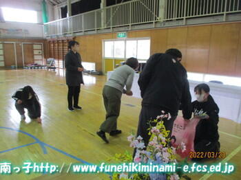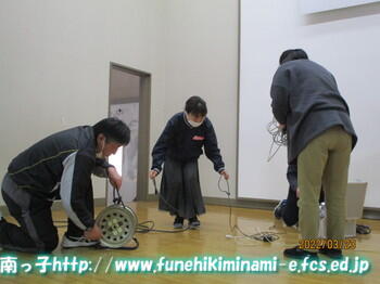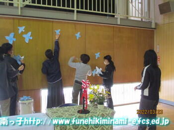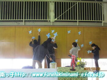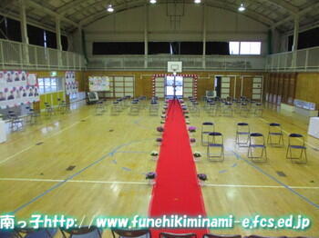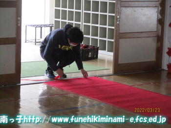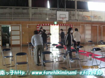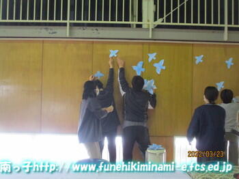 卒業式での子どもたちの姿を浮かべながら会場整理を始めました。