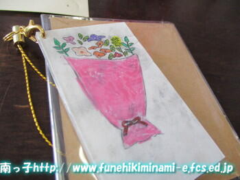 <6年生からいただいた手作りのキーホルダー心にパッと花が咲きました!>