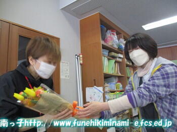 (勤務日ではない職員も、3人のもとへ駆けつけて顔を見せてくださいました。)