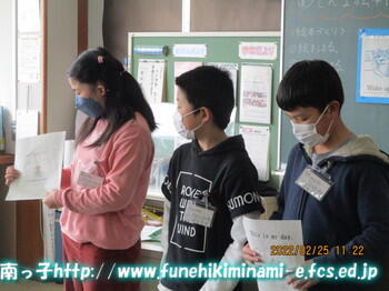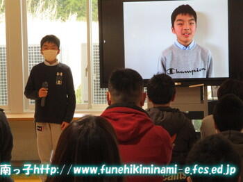 子どもたちは前に出ながら、外国語を使って発表(話すこと)していました!