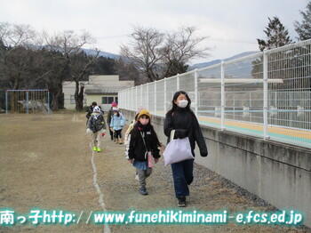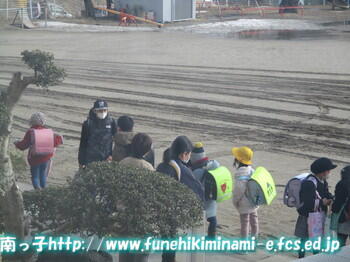 先生たちは、担当する子どもたちの下校班に付き添いながら見守っています。