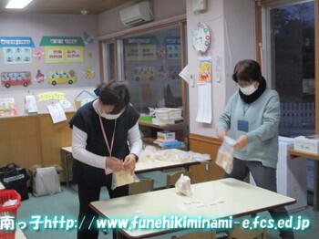 工作の材料を袋詰めして準備したり片付けをしたりしてくださっている