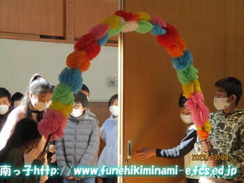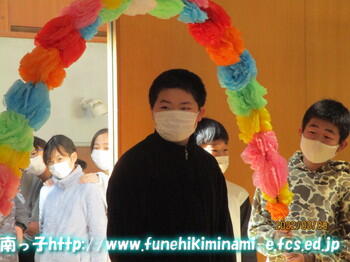 6年生の子どもたちは、会場入り口前にて待機をし、