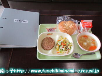 口いっぱいに、バーガーをほおばる子どもたちの給食風景がありましたよ!