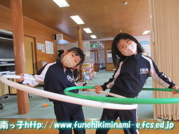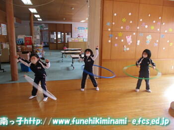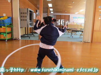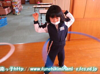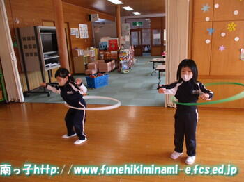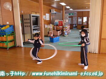なわとびの次に、フラフープの遊びに夢中になっている幼稚園生の姿がありました