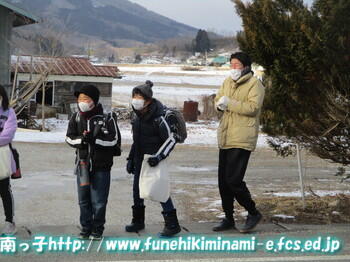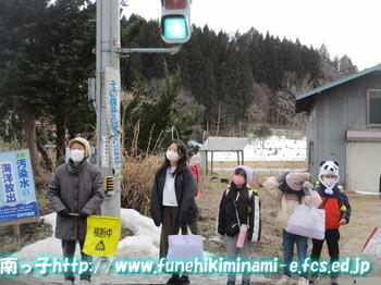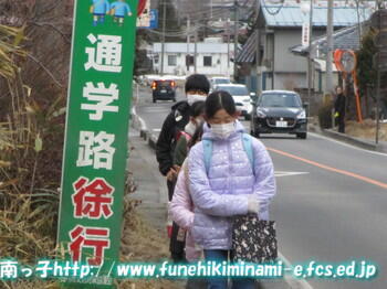 船引南中学校入り口には、中学校の校長先生がいつも生徒さんたち・送迎の車両を見守っています。