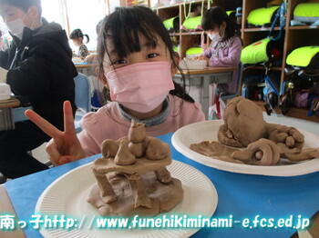 1年生の教室では、図工で「大好きな食べ物」を作っていましたよ!