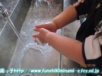 <手洗いをしっかりとがんばっている幼稚園生の姿より>