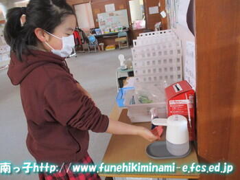 <入念な手洗いをする4年生・消毒を大切にする4年生>