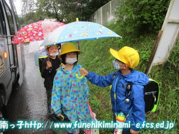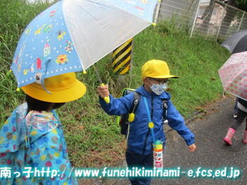 傘をしっかり持って歩く姿がありました。4月から比較すると、上手になってきました。