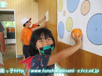 1年生 「はいいらっしゃい!2回投げられるよ!がんばってみて!」