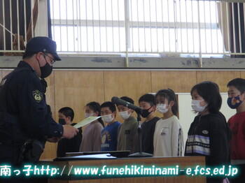 いつも子どもたちの通学時間帯にパトカーで巡視してくださっている駐在所さんの姿も