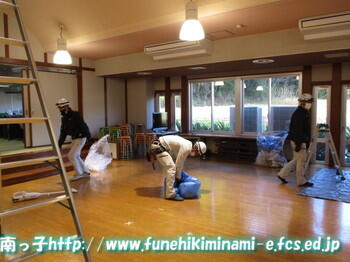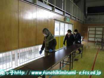 ご来校くださる方々を思いながら、椅子やテーブル、スリッパを一つ一つきれいに拭いてくださいました。