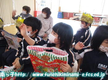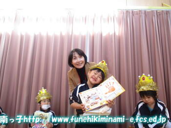 <図書係>さんが、みんなを楽しませようと、本の読み聞かせを行っていましたよ。