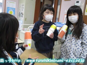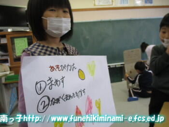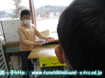 1年生 「これね、私たち、こまグループが作ったんだよ。」