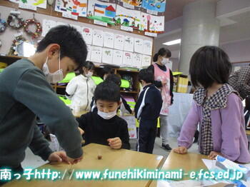 1年生 「やじろべえもあるよ!」「こっちに来てね!」