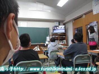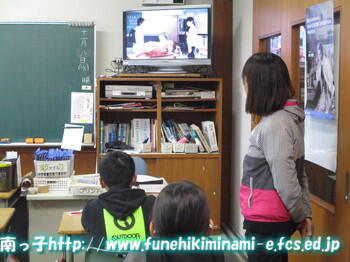 真剣に教材ビデオを視聴する6年生たち