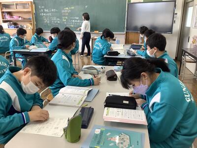 3年生は、社会の授業。しばらくは歴史の学習が進みます。