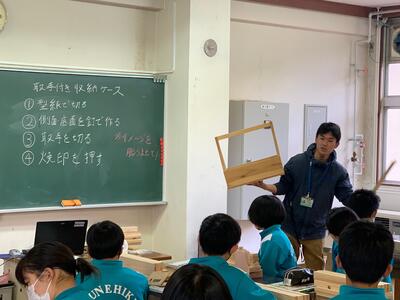 その後、木工クラフト(取っ手付き収納ケース)について、制作の仕方を教えていただきました。